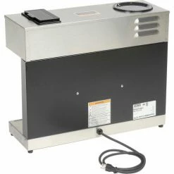 Commercial quality coffee maker quickly brews coffee for offices, break rooms, wating areas, and more. Requires no plumbing – completely portable. Features separately controlled top warmers for continuous coffee heating. Stainless steel hood and base. UL listed. NSF Certified.