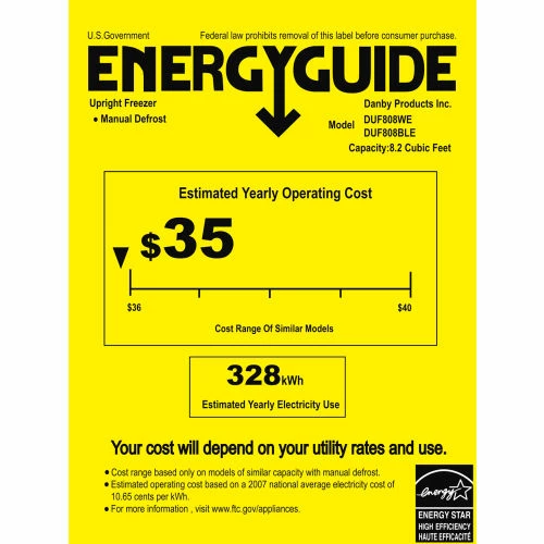 - 8.5 cu. ft. (241 liter) capacity upright freezer