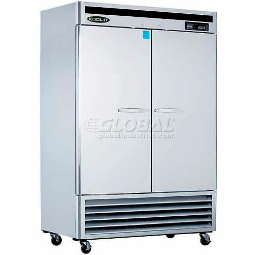 The Kool-It Bottom Mount 2-Section Reach-In Refrigerator has 2 solid stainless steel doors. The unit includes six shelves that can accommodate full-size sheet pans. Includes heavy duty 4″ casters w/ 2 front brakes. The bottom mount refrigerator is ETL / ETL Sanitation, Energy Star® rated.