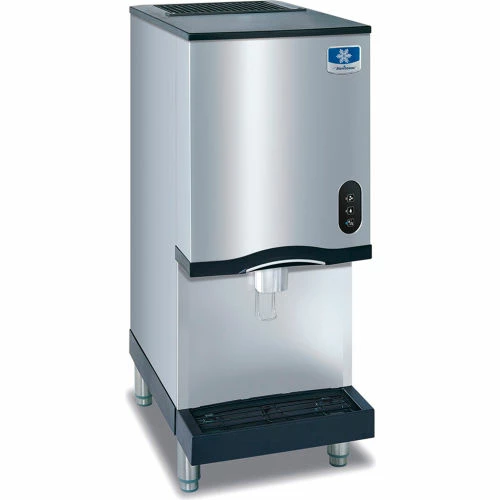 This Manitowoc countertop unit will produce up to 315 lbs.of bite-sized ice per day at 70° air/50°F water or 222 lbs. per day at 90° air/70°F water. It features easy lever activated dispensing, Unit has 10 lb. ice bin storage capacity & new DuraTech front panel for easy cleaning and reduced hard water staining. Blue LED light provides dispense viability in rooms with limited lighting. Unit is 16 1/4″W x 24″D x 35″H. R404A refrigerant. Ice machines are factory pre-wired with a 6′ (180 cm) power cord and NEMA 5-15P-plug configuration. NSF & cULus listed.
