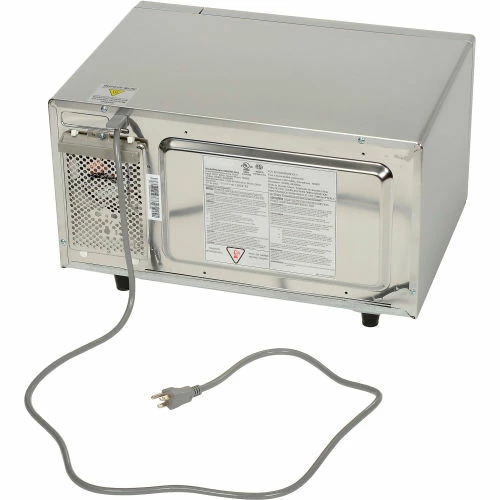 Commercial microwave is ideal for kitchen and breakroom areas for efficient reheating and defrosting of foods. Motor driven bottom antenna allows even energy distribution for reliable heating results. Sturdy, smooth aluminum door handle. See through window pane and interior oven light ensure clear visibility to food as it cooks. Touch control panel includes 100 programmable menu setting, 3 stages of cooking, 5 power levels & adaptable controls. Maximum cooking time is 60 minutes. UL, FCC, ETL Sanitation certification. An ETL Sanitation Mark on Food Service Equipment indicates that equipment is fit for use in the production of food intended for human consumption, or the equipment is fit for use in an environment where food intended for human consumption is produced. ADA Compliant.