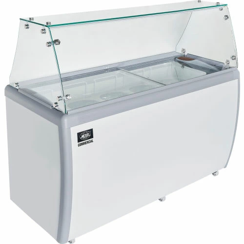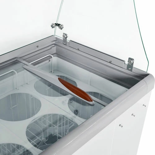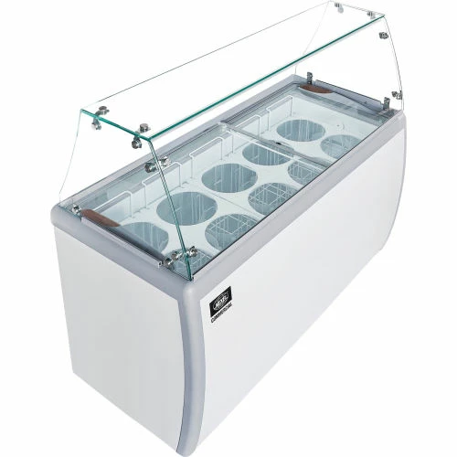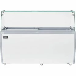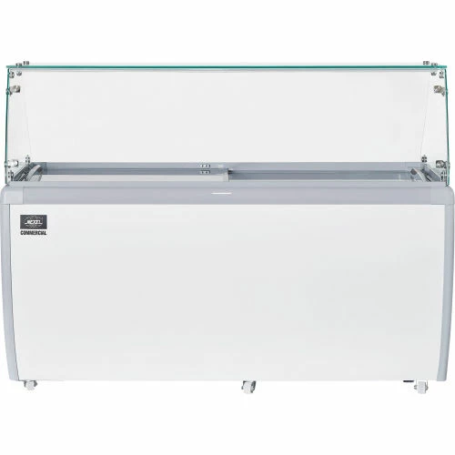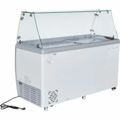 The Nexel® Ice Cream Dipping Cabinet is an essential display and storage piece for ice cream parlors, stores, and businesses that offer soft serve desserts in a quick service fashion. The cabinet design features 2 sliding glass doors that are built to retain cold air while maintaining clear visibility of ice cream choices on display from the inside. LED interior lighting provides attractive lighting for all offerings. The white painted steel interior is sleek in appearance for simple cleaning and upkeep. Runs with a highly efficient Eco-friendly R290 refrigerant. Transportable on 4 caster wheels where 2 are lockable to secure positioning.