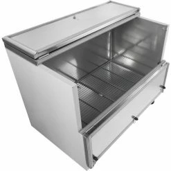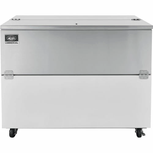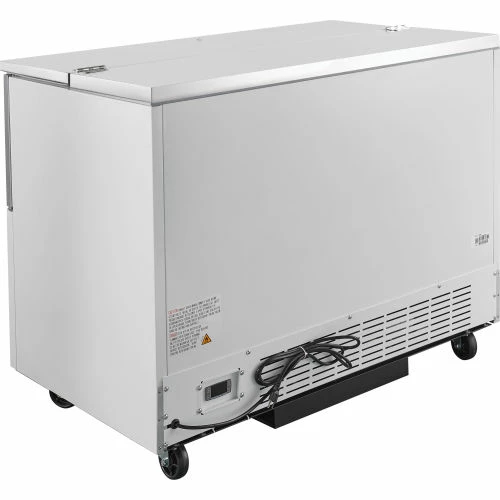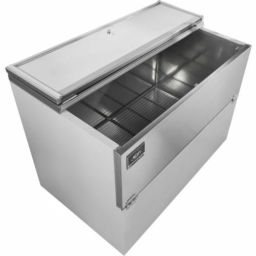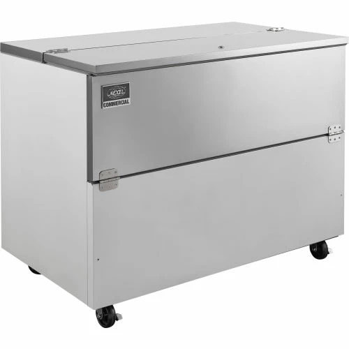 The Nexel® Milk Cooler is perfect for school cafeterias, cafes, and other areas with kitchens that serve cold beverages. This cooler holds up to 12 crates thanks to its 18.5 cu. ft. interior. The digital thermostat located on the back of the unit allows temperature adjustment from 33 – 40 degrees Fahrenheit to keep milk and beverages at their optimal temperatures. Single sided, flip-up and fold-down doors are lockable for product safety and security. This unit uses R290 hydrocarbon refrigerant making it an environmentally-friendly business choice. Center drain allows for easy defrosting and cleaning. Durable powder coat finish with stainless steel interior withstands vigorous crate usage. 1 Year Limited Wararnty.