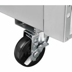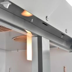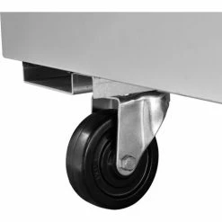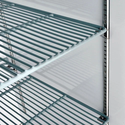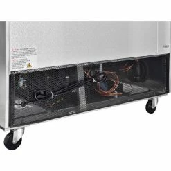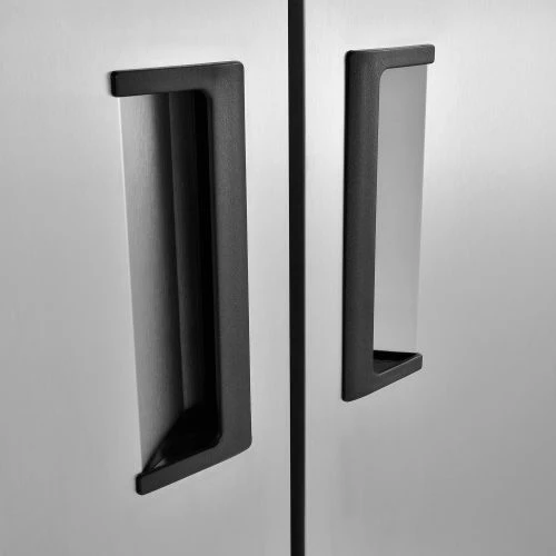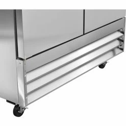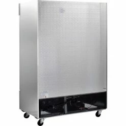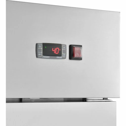 Commercial grade reach in freezer is durable and spacious. Constructed of stainless steel exterior and aluminum interior for long life and easy cleaning. Solid double doors have easy grip recessed handles. Unit includes 6 adjustable PVC coated steel shelves for versatile storage needs and bright incandescent interior lighting. Exterior digital temperature controls offer precise and constant temperatures ranging from -8 to 0°F. R290 refrigerant offers low environmental impact and excellent thermodynamic performance. Bottom mounted 1/2 HP compressor allows for easy servicing. Unit rolls easily on 3″ swivel polypropylene casters, 2 with brakes. 47 cubic ft. capacity. 54″W x 32-1/4″D x 82-1/2″H. Interior dimensions are 49.4″W x 27.1″D x 60.2″H. Unit does not display in Celsius.