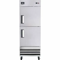 Need storage that’s cool inside and out? The Nexel® Reach In Split-Door Freezer is a strong contender for providing reliable cold food and drink storage around the clock. Equipped with solid doors for added security, durable stainless-steel construction, and PVC wire-coated shelving, this freezer is ideal for holding large quantities of goods use in convenience stores and quick service restaurants. An embedded digital thermostat makes it easy for operators to change the temperature at will. The inside of the fridge features PVC wire-coated shelving to support large quantities of goods. Stainless steel construction.