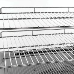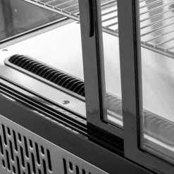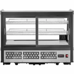 The Nexel® Refrigerated Countertop Display is the ideal choice for presenting and preserving food and small goods for bakeries, delis, convenience stores, and similar food service businesses. The unit includes 2 adjustable shelves, an embedded digital thermostat, 2 sliding doors at the back and an 8 ft. power cord. Able to fit pre-made types of foods from cookies to pie slices in a wide space of 4.8 Cu Ft. This model is a R290 refrigerant type. Resilient stainless steel body provides lasting durability. Resilient stainless steel body provides lasting durability.