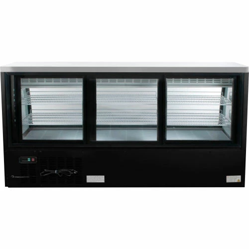 Need convenient and compact storage that’s cool inside and out. The Nexel® Refrigerated Deli Display Case presents cold food and drinks for a variety of businesses. Equipped with transparent glass doors and durable epoxy-coated steel shelving, this freezer is ideal for holding large quantities of goods in delis, convenience stores, and quick service restaurants. An embedded digital thermostat makes it easy for operators to change the temperature at will