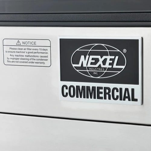 The Nexel® Air Cooled Under Counter Ice Machine produces up to 120 lbs. of high quality, crystal-clear full cube style ice per day, making it suitable for any bar room, industrial kitchen, or similar foodservice station. This self-contained ice bin operates on an easy-to-use control panel for completely intuitive control. Each model features a 40 lb. ice capacity with automatic overflow prevention to prevent spillage. Stainless steel construction with durable plastic bin door provides a traditional appearance to accommodate restaurant and industrial kitchen stations. Unit includes ice scoop, water filter and drain hose. Front access panel for quick maintenance checks. Adjustable legs to accommodate for uneven flooring. Suitable for freestanding or built-in applications and is and ETL approved for commercial use.