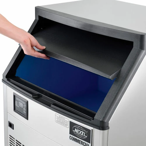 The Nexel® Air Cooled Under Counter Ice Machine produces up to 210 lbs. of high quality, crystal-clear full cube style ice per day, making it suitable for any bar room, industrial kitchen, or similar foodservice station. This self-contained ice bin operates on an easy-to-use control panel for completely intuitive control. Each model features a 80 lb. ice capacity with automatic overflow prevention to prevent spillage. Stainless steel construction with durable plastic bin door provides a traditional appearance to accommodate restaurant and industrial kitchen stations. Unit includes ice scoop, water filter, and drain hose. Front access panel for quick maintenance checks. Adjustable legs to accommodate for uneven flooring. Suitable for freestanding or built-in applications. ETL approved for commercial use.