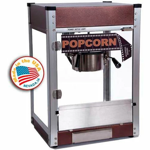 Cineplex 4 Ounce Antique Copper Popcorn Machine has a specially made textured copper color, a pitted, powder coat material treatment that is all the rage in high-end home accents. Designed by placing the cord in back, graphics and doors in front.