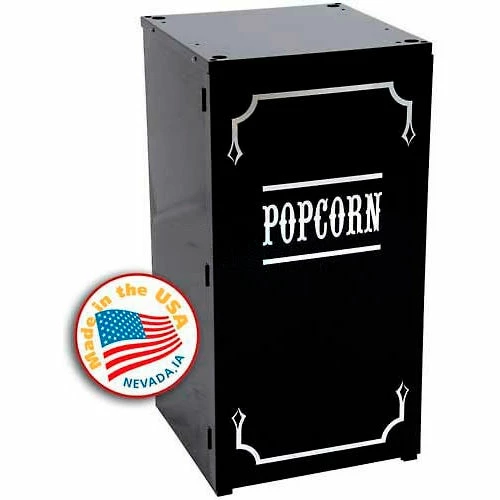 Stands provide easier access, better merchandising and great stability. The sturdy, all steel construction, has a chip resistant coating. Hinged access door keep supplies out of sight for customer display. Also features convenient built-in storage space. Black powder-coat finish and label style provide an exact match to Antique 1911 Popcorn Machines. Small stands fit the 4 oz popcorn machines.