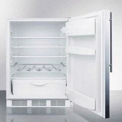 Sized with a 24″ footprint and 32″ height, the front-breathing FF61BISSHVADA all-refrigerator can be built-in under lower ADA compliant counters or used freestanding. This model comes with a white cabinet finish and stainless steel wrapped door. A sleek handle in brushed stainless steel completes the look.