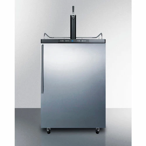 Automatic defrost operation ensures minimum user maintenance inside the 5.6 Cu. Ft. interior. A digital thermostat makes it easy to manage the temperature at the touch of a button. The external digital display shows the temperature in Celsius or Fahrenheit to ensure your beer is stored exactly how you like it. Our American Sankey dual tap kit includes all the accessories you need for draft service, including a 5 lb. CO2 tank and regulator. The floor is reinforced with a steel cover for added durability when loading kegs.