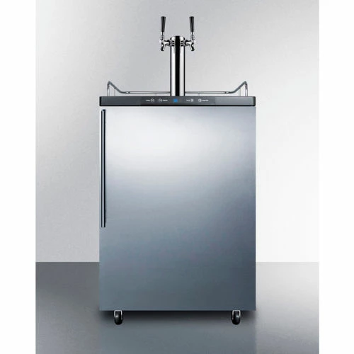 Automatic defrost operation ensures minimum user maintenance inside the 5.6 Cu. Ft. interior. A digital thermostat makes it easy to manage the temperature at the touch of a button. The external digital display shows the temperature in Celsius or Fahrenheit to ensure your beer is stored exactly how you like it. Our American Sankey dual tap kit includes all the accessories you need for draft service, including a 5 lb. CO2 tank and regulator. The floor is reinforced with a steel cover for added durability when loading kegs.