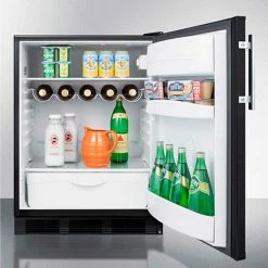 Sized with a 24″ footprint, the FF63BBI is front-breathing for built-in use. The fully finished cabinet also allows freestanding use for added versatility. This model has a black exterior finish. The reversible door includes a professional style handle in stainless steel.