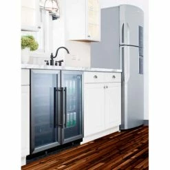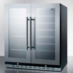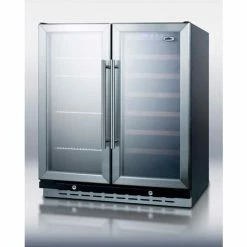 The SWBV3067B is a 30″ wide wine and craft beer cooler designed for built-in installation under counters. The fully finished black cabinet also allows freestanding use. This unit includes two glass doors with a unique French door swing and seamless stainless steel trim. Both include factory installed locks and professional handles. A stainless steel kickplate completes the look. Two separate zones feature independent digital thermostats, letting you preserve red wine under warmer temperature conditions while keeping white wine or craft beer at colder temperatures. We provide six wooden wine shelves in a jet black finish and four wire chrome shelves, letting you arrange the shelving configuration to best suit your storage needs. Recessed LED lighting lets you display all items under an attractive, energy efficient glow.
