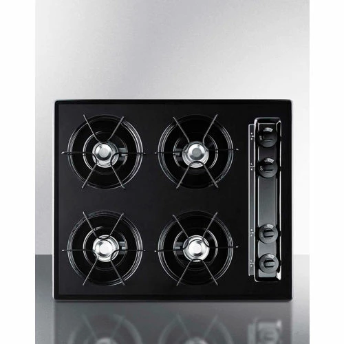 The TNL03P is a 24″ wide cooktop with a scratch resistant porcelain surface in black. Four 9000 BTU open burners run on battery start ignition and natural gas and include durable porcelain enameled steel grates. A recessed top helps to contain spills. To convert this unit for LP gas, order the Kit LP.