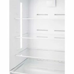 - Deluxe interior includes dual crispers, glass shelves, LED lighting, and scalloped steel wine rack