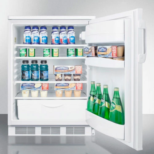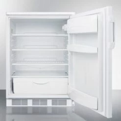Summit’s FF6W series features high performing, perfectly sized all-refrigerators with automatic defrost and deluxe interiors designed for storage convenience. Automatic defrost saves on time and maintenance, while Summit’s unique design simplifies clean-up. We use a “hidden” evaporator set behind the rear wall to create a seamless interior. This allows you to wipe down the back without having to get between crevices or touch any machinery. It also maximizes interior space, giving the model one of the widest and deepest shelves in the industry. These models are similar to our popular FF7 series of all refrigerators, but include a European-designed luxury interior with a crisper and door shelves that offer more storage options. User friendly and energy efficient, the FF6W includes a variety of models to fit commercial, household, and medical needs.