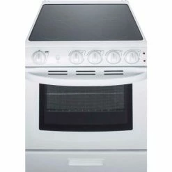 The REX2421WRT comes in a white exterior finish with color-matched knobs and handle. Designed for maximum convenience, this range brings the most popular features of higher priced electric ranges to smaller kitchen spaces.