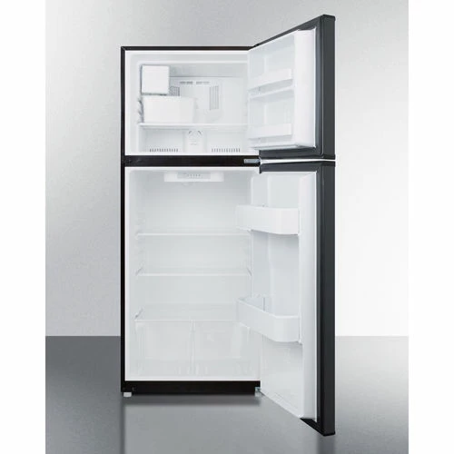 The FF1072BIM is ideally sized at just 24″W and under 60″H, but with a generous 9.9 Cu. Ft., capacity. The refrigerator compartment includes adjustable glass shelves for spill-proof storage while the freezer includes a wire shelf and several glide positions to best suit your storage needs. The crisper drawer features slide humidity controls for optimum storage, while the door rack holds full gallon containers. This unit is fully frost-free for low maintenance operation, with a factory installed icemaker in the freezer section for added convenience..