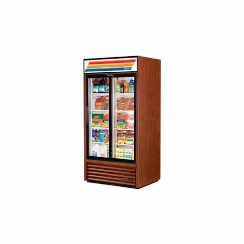 Showcase your best-selling refrigerated goods in this spacious 33 cubic foot merchandiser with sliding doors by True. The white interior with bright LED lighting is sure to attract customers and increase impulse sales. This unit also features- (2) Low-E double paned glass doors, Hydrocarbon refrigerant, wear resistant vinyl exterior, (8) adjustable PVC coated shelves, 12-inch long handle per door, self closing door with positive seal and more.