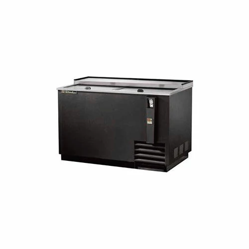 Constructed with wear resistant laminated black vinyl front and sides, matching black aluminum back, 300 stainless steel countertop and lid and welded, heavy duty galvanized base rail for long lasting durability. Slides neatly under bar or countertop for nearby access. Deep well design includes PVC coated adjustable bin dividers, removable bottle cap opener and cap catcher. Holds (16-1/2cs) 12oz bottles or (24cs) 12oz can capacity. Made in U.S.A. NEMA 5-15P. HP is 1/3. Door quantity is 2.