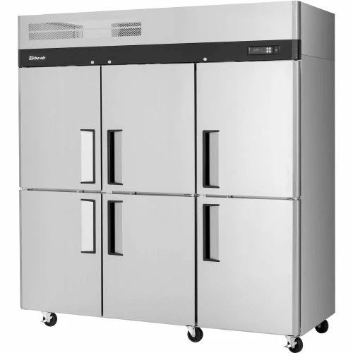 Made using stainless steel interior and exterior for cleanliness and long life. Includes height adjustable heavy duty polyethylene coated wire shelves. High-density polyurethane insulation is CFC-free. Digital temperature control system provides precise and constant temperature control. Doors feature easy grip handles and magnetic door gaskets. Efficient refrigeration system offers oversized and balanced R-134A refrigeration. Includes efficient evaporators and condensers. Automatic evaporator fan motor delays help increase the life of the compressor. Top mount compressor ensures high efficiency and performance. Interior has incandescent lighting. Moves easily on 4″ swivel casters; half are locking casters. Power Cord length includes 9 feet. Refrigerator offers 33 to 38°F temperature. NSF approved. ISO 9001 & CEC certified. Energy star product. 77-13/16″W x 28-7/16″D x 78″H Overall Dimensions.