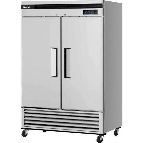 Made using stainless steel interior and exterior for cleanliness and long life. Includes stainless wire shelves and high-density polyurethane insulation. Digital temperature control system provides precise and constant temperature control. High tech monitor will beep if the door has been opened for more than 5 minutes. Doors feature easy grip handles and magnetic door gaskets. Monitor digitally displays temperature and current status. Efficient refrigeration system offers oversized and balanced R-134A refrigeration. Includes efficient evaporators and condensers. Automatic evaporator fan motor delays help increase the life of the compressor. Power Cord length includes 9 feet. Bottom mount compressor allows easy access for servicing. Interior has incandescent lighting. Moves easily on 4″ swivel casters; half are locking casters. Refrigerator offers 33 to 38°F temperature. UL listed. NSF approved. ISO 9001 & CEC certified. Energy star product. 54-7/16″W x 30-5/16″D x 78-1/4″H Overall Dimensions.