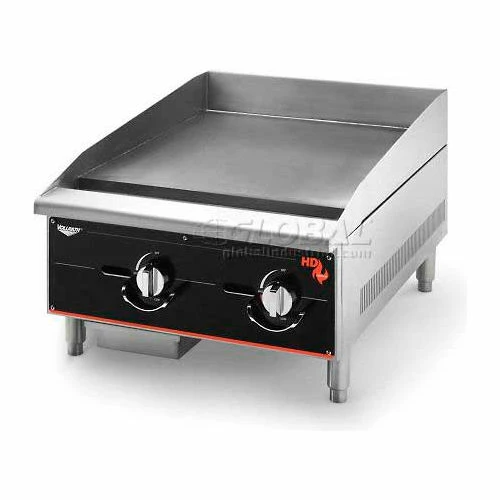 - Polished 1″ (2.5 cm) thick steel griddle plate for even heat distribution and retention