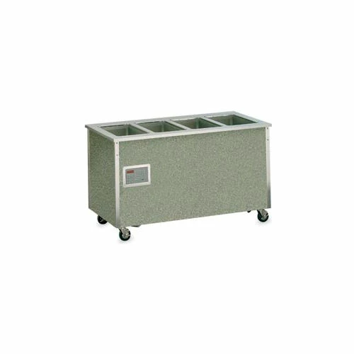 High density glass fiber insulation. Upraded 18 gauge stainless steel base with standard black laminate. Optional brushed stainless steel exterior finish or choose from hundreds of laminate finishes. 18 gauge 300 series stainless steel counters and wells. 300 series stainless steel tray slides and plate rests. Heavy-duty 4″ (10 cm) swivel casters with brakes. 5-1/4″ (13.3 cm) clearance between floor and bottom of unit. 18 gauge 300 series steel work surface. Touch-Temp® electronic control. Optional dial controls. Manifold hot well drains are standard. Optional 14 gauge work surface available. Energy efficient 625W elements. Drain hose on operator side of base. NSF4 listed. 88″L x 28″W x 34″H Overall.
