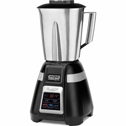 The Waring® BB340 Blade Series 1 HP Blender has you covered when your bar is busiest. Make three 16 oz. margaritas in 12 seconds or less! Its 2-speed, 1 HP motor features electronic toucHPad controls with ON/OFF, LOW, HIGH, STOP, and PULSE—and a 99-second countdown timer. A removable, rubberized jar pad dampens sound and makes wipe-down cleanup easy.