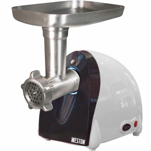 The Weston #5 Electric Meat Grinder and Sausage Stuffer features a powerful 500 watt motor for grinding up to two pounds of meat per minute. Grind meat to perfection for fresh burgers, sausage, meatloaf, chili meat and more. This compact machine for home use has a forward and reverse function to help prevent jamming. This Meat Grinder includes a stainless steel grinding knife, two stainless steel grinding plates for medium or coarse grinds, a sausage stuffing funnel and a stomper.