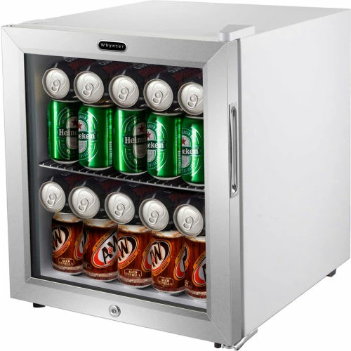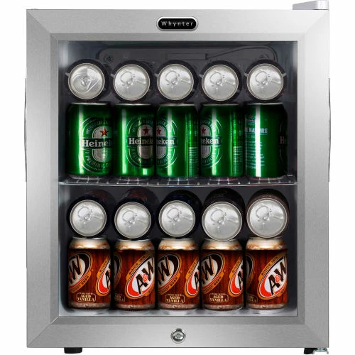 The Whynter 62 Can Stainless Steel Beverage Refrigerator is the ideal choice for compact and efficient beverage display and refrigeration. The Whynter Beverage Refrigerator/Cooler offers a compact and powerful cooling solution ideal for your entertaining or retail merchandising needs. Unlike many budget beverage refrigerators, the Whynter 62 Can Stainless Steel Beverage Refrigerator utilizes premium features and design to provide a sleek showcase that will be centerpiece of any space. With its powerful compressor and internal air-cooled system, this beverage refrigerator creates an evenly-cooled space ensuring consistent temperatures throughout the beverage refrigerator. Mechanical temperature control range from high 30&3176;F – mid 60°F. Glass door is reversible with a recessed handle for flush finish look & includes a cylinder lock with 2 keys. Slide-out wire shelf is adjustable to meet storage needs. ETL listed.