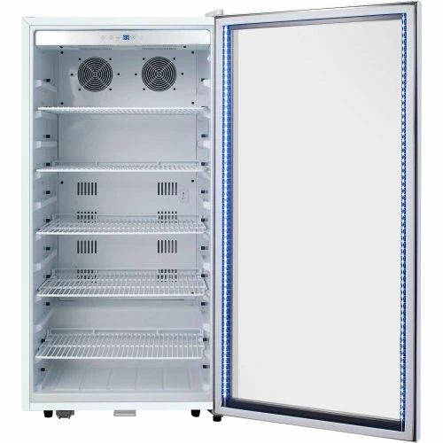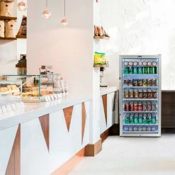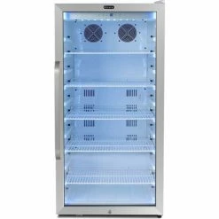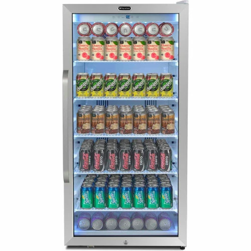The Whynter CBM-815WS Freestanding 8.1 cu.ft. Stainless Steel Commercial Beverage Merchandiser Refrigerator is the perfect addition to any home or commercial establishment for cooling and storing your favorite beers and canned beverages. Effortlessly control the interior energy-efficient LED soft light and temperature settings of your beverage refrigerator using the digital control panel. While the see-through tempered double pane glass door displays your beverage collection, the Whynter CBM-815WS is also equipped with a superlit door lighting strip to make it easy to find exactly what you are looking for.