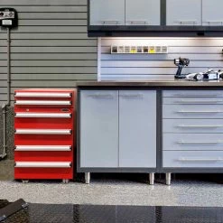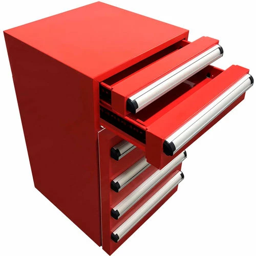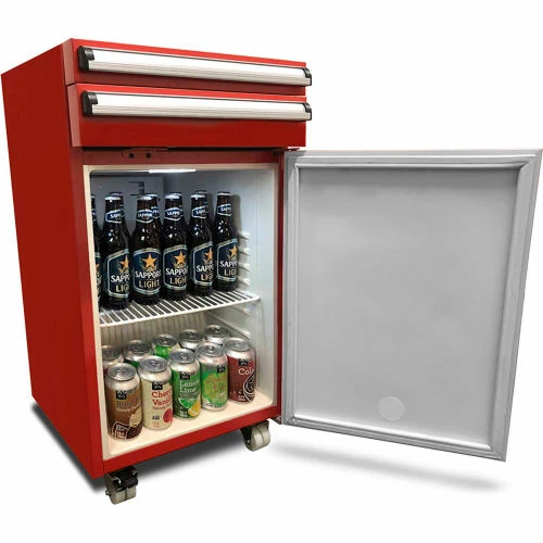 Red Full Stainless Steel ExteriorUnique design blends in with most workshop or garage settings.Powerful Compressor CoolingPrefect for keeping beverages or other food items cool.2 Roller Guided Easy-Slide Metal DrawersFor storing a wide variety of tools and hardware.